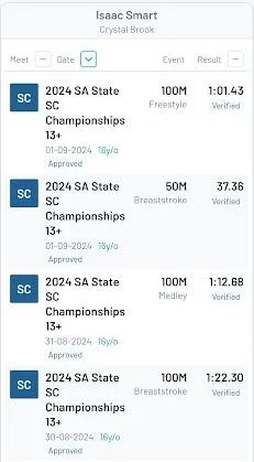 SA Secondary Schools Swimming - 2nd place Open 50m Breaststroke Division 1 36.63; 3rd place Open 50m Backstroke Division 1 34.83